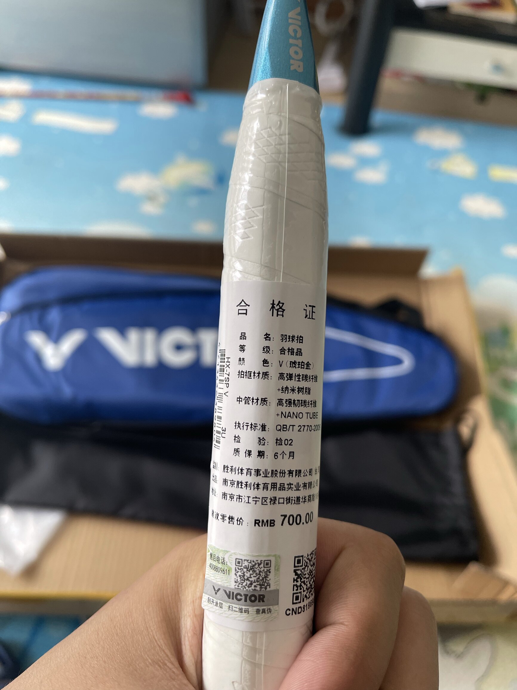 刚来的时候是带着塑料膜的,我自己把手胶缠了一下,球拍真的很棒,拉线也很稳,赶上十一特价季买的,颜色也很喜欢~当做平时玩耍用已经很棒了!第二次在店里买球拍,下次再来!