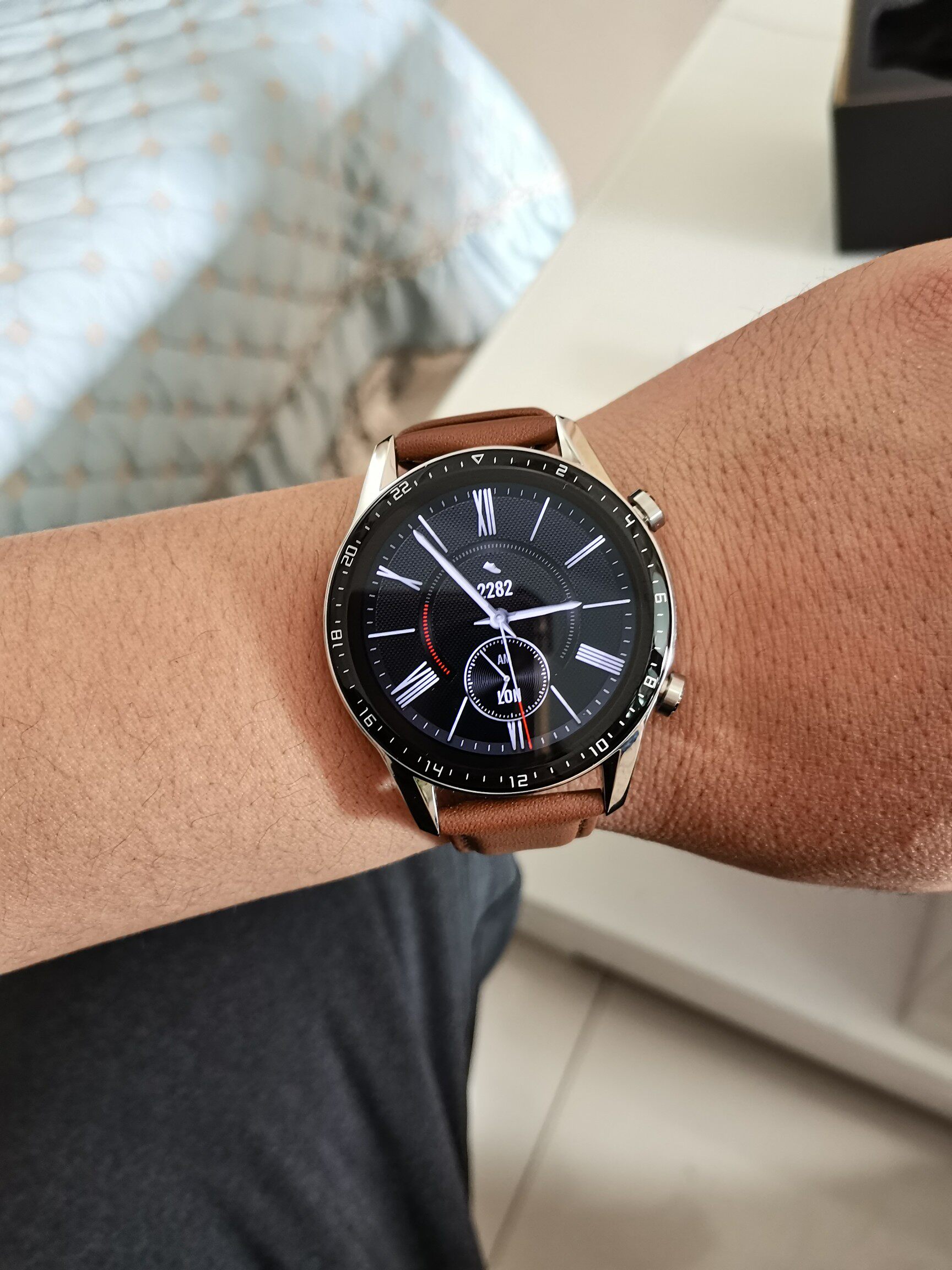买的46毫米的,曜石黑,咨询商家后送了优惠券,特别划算,比其他店铺活动优惠,公司年会抽奖,特别好,客服覆盆子特别有耐心,点赞