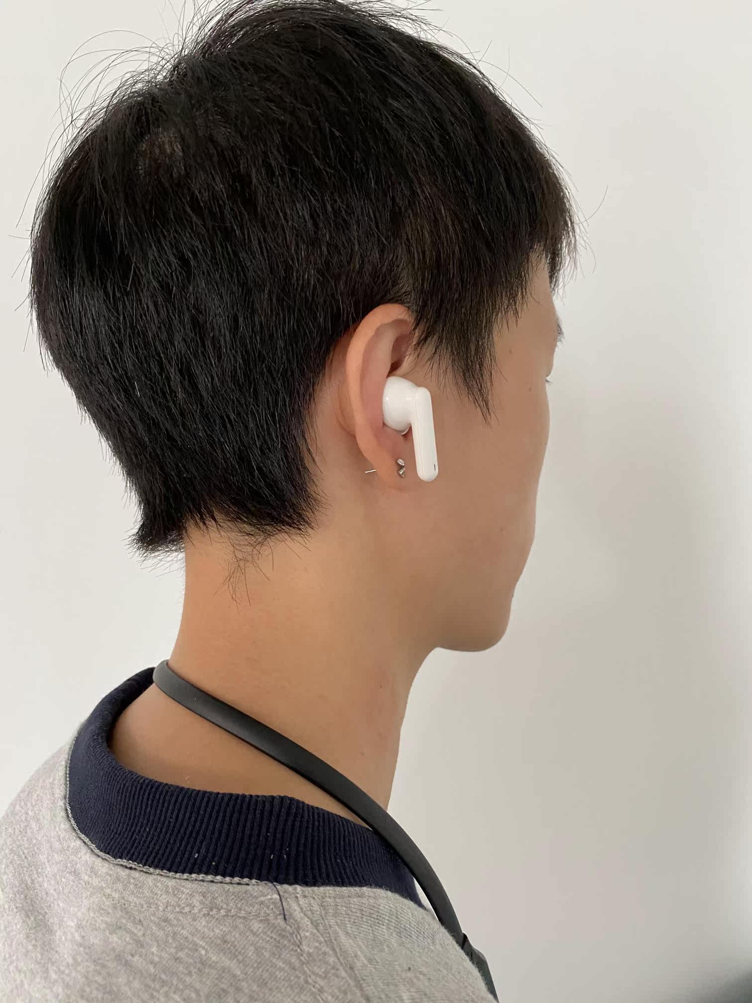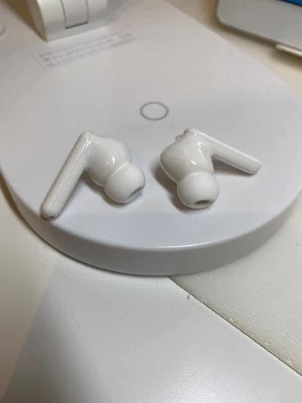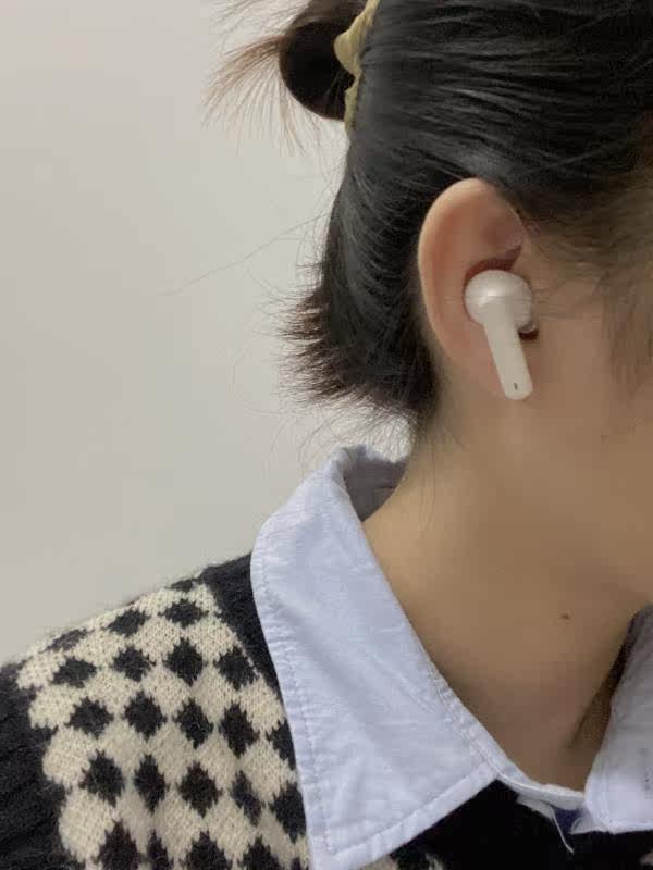 外观材质:很简约的白色,比较好看,做工精致。佩戴感受:戴上很舒服,没有异物感,不容易掉,我是小耳朵也可以佩戴。声音效果:音质是我比较满意的一个方面,音质蛮好的,我觉得我的苹果耳机几乎没什么差别,很满意,希望它的寿命可以长一点,就更完美了。