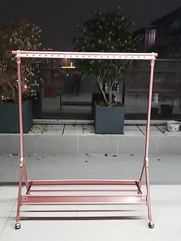 东西收到后立马安装了 给我和家里人的感觉就是太矮和不稳 在客厅里怎么放都有一个脚略微不平 晾晒冬被也不稳往下拿的时候都要倒 管子的壁不太厚放鞋的踏板也软 和不锈钢的晾衣架差不少价格方面也不如不锈钢的便宜 要不是运费太贵就退款了